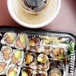 I've driven by Futigi a few times (it's on the corner of 164th St and 69th Ave) and I've been wanting to stop by. I was pretty far away at work so I ordered delivery. I was happy when I saw that they offered lunch specials! I opted for the 3-rolls lunch special - I got the salmon avocado roll, eel avocado roll, and shrimp tempura roll. This wasn't mentioned on the app, but this comes with miso soup. The rolls arrived a little disorganized (probably knocked around during delivery) but everything was there. I enjoyed the salmon avocado and the eel avocado roll the most. The salmon and the avocado were so fresh and the eel surprisingly did not come with tiny bones or loose scales (this is common when ordering eel at any sushi restaurant because the eel comes straight from a package precooked and it's hard to see the minuscule bones and scales under the dark sauce). The shrimp tempura roll was mediocre. The shrimp was pretty short so it didn't cover the entire length of the roll (5 pieces) so one piece I had was shrimp-less, just rice and seaweed. They drizzled a little bit of unagi sauce on it like they did with my eel avocado roll, but it was futile. The taste and texture of the shrimp tempura roll were just not hitting. It likely got cold from the 50 min delivery time so I didn't want to discredit the restaurant for that. This is getting 4 stars from me anyway because the other two rolls were fantastic and the price was good. (At the time of this review in March 2023, it's $14.50 for 3 rolls)